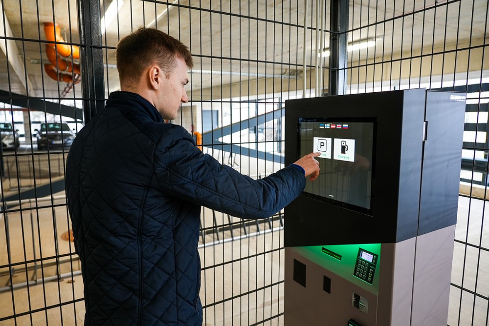 Entringo-järjestelmään on integroitu myös pysäköintitalon sähköauton latauspisteet, ja lataamisesta voi maksaa samassa maksuautomaatissa.