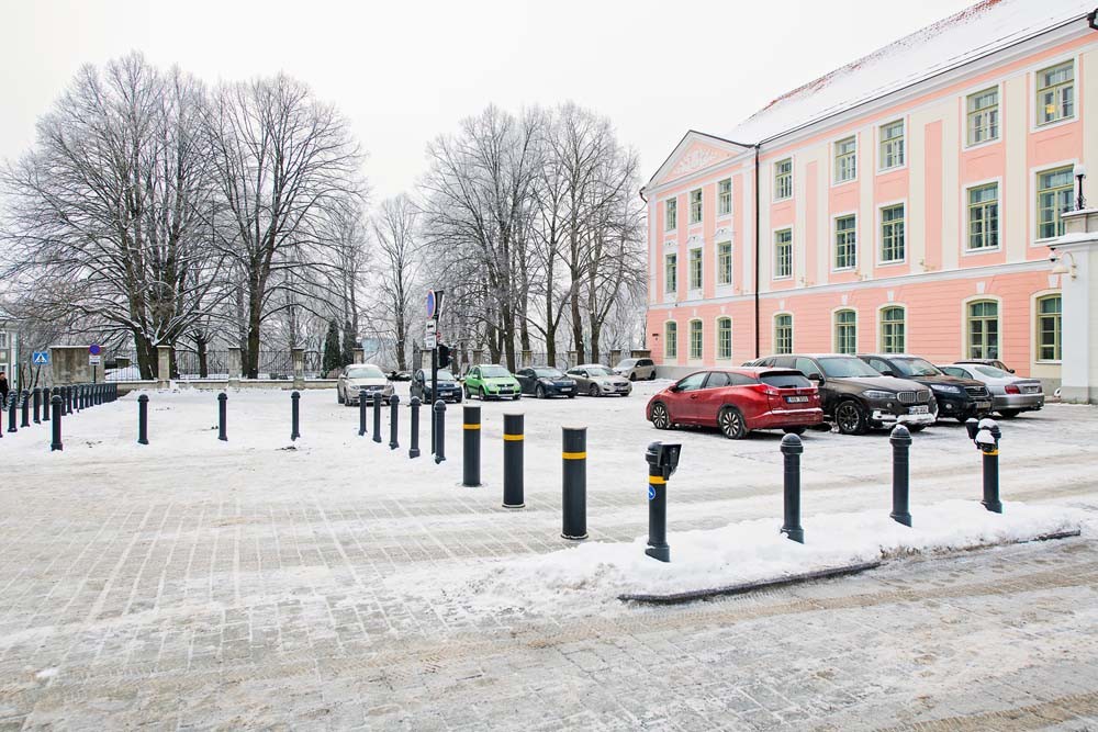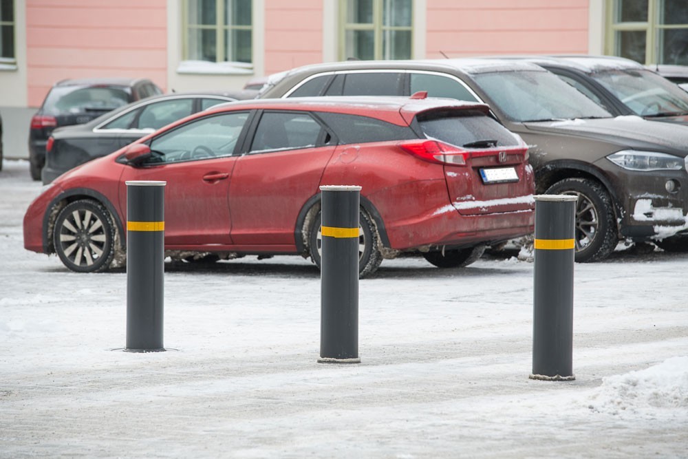 Linnan edustalla haluttiin rajoittaa ajoneuvoliikennettä ja sallia kulku vain luvallisille ajoneuvoille, minkä vuoksi alue aidattiin pollareilla. Hansab asensi 49 kiinteää pollaria, joiden ulkoasu muistuttaa aiemmin paikalla olleita perinteisiä pylväitä ja jotka on yhdistetty keskenään ketjuilla. Sisäänajon kohdalle sijoitettiin kuusi automaattista pollaria, joita voidaan tarpeen mukaan laskea ja nostaa. Pollarit edustavat korkeinta turvallisuusluokkaa ja on suunniteltu toimimaan 24/7 kovassakin kuormituksessa. Ne kestävät myös äärimmäisiä sääolosuhteita, jopa –55 °C pakkasta.